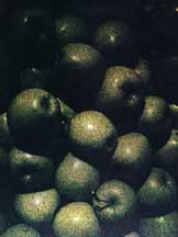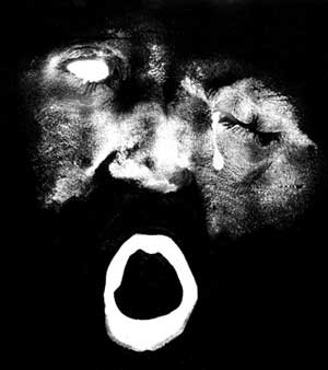 I lived in the back of my Toyota pickup truck and started going to the local galleries, and in one of them I heard that my mentor, Jerry Uelsmann, was having a one-man show at the Art Institute of Chicago. So I took the five hour drive. I saw Chicago. Now THAT's a big city, I thought, and I moved there within a few days. I took a job with Foremost Liquors as a wine consultant and applied for the Master's program at the School of the Art Institute of Chicago (SAIC). Despite the fact that I had never finished my journalism degree at UF, after a battery of interviews and a psycho-analysis via portfolio, they admitted me. Sonia Sheridan was on the admissions committee. She was an associate professor who founded a department called Generative Systems and was taking the SAIC into the 21st century kicking and screaming. She told me of her vision for using technology to close the gap between vision and reality. I wanted to create printed images that combined photographs to unveil greater truths, but I wanted to use color and mass production methods such as offset printing. I became her first grad student, and as such became the world's first grad student in Art and Technology. While she was artist in residence at 3M Corporation, I was working with Harry Wayne, a physicist at American Photocopy Co. (APECO). I salvaged a prototype color copier from APECO's dumpster, and bought a used and beat-up Davidson offset press. I took photographs of apples and worked with them on my home-made machines to gain control over color. I used tungsten wires to charge zinc oxide coated papers, then exposed them under an enlarger with separation filters, and dunked them in tanks of mineral spirits with pigments. I made my apples every possible color. I spent days producing a single print that can now be produced with Photoshop in a few minutes. I tried every tool I could think of: computers, holography, copy machines, telecopiers, chromalin, thermography, reprographics, offset presses, and laser projectors. Then one day I charged a zinc oxide sheet, pressed it against my face and dipped it in a solution of charged carbon black pigment suspended in mineral spirits. It made a faceprint that I called a sensugraph. I made another and sent it to Kurt. The next day, a print from my friend Kurt Westfall arrived in the mail. He had made it by painting his face, pressing it against photo paper, exposing it to light, and developing it. He had made a faceprint and mailed it to me the day before I mailed him mine. Spooky. While at SAIC I took classes with some pretty good photographers: David Vestal, Ken Josephson, Harold Allen, Joyce Niemanas, and of course Sonia Sheridan. Most of my graduate work, however, was with electrostatic imaging. In 1973 I bought an eight foot long Xerox flatbed camera, their first copier, charged the selenium plates and shot out the window of my apartment. I even found a way to make the antique Xerox machine work with color toners. At the time, Sonia produced an art magazine called YONY, and my master's thesis became Volume 1 Number 4, in May 1975. I produced it entirely with electrostatic printing plates and printed on my Davidson. Essentially I was trying to do the kinds of things we can now do with Photoshop only instead of working on a computer I was working with an enlarger and Rube Goldberg device made from old photocopiers and pie pans. In January 1976 I curated an exhibit at Columbia College in Chicago called "Unconventional Imaging Systems." It featured the work of 17 artists from around the world, among them Sheridan, Joel Swartz, John Bosche. It contained 3M Color-in-Color, electrofax, telefax, thermofax, Xerography, and computer printout. This was almost certainly the first exhibit of its kind in the world. Finally, in 1977, I was awarded an MFA from SAIC with a specialty in Generative Systems, the first of its kind.