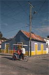 Mario peddles Mexican food from an insulated chest on his tricycle. Some of the best on the island of Cozumel, the Island of Swallows. Better tasting than the stuff in the restaurants that attract the cruise ship crowd. His wife makes it at home starting at 5 a.m. and she cooks until well past noon. Her name is Juanita, but everyone calls her Maizy because of the delicate, maize tortillas she makes fresh daily. The contents of the rolled up tortilla logs fluctuates with market prices. Sometimes they are filled with thin strips of grilled flank steak, a paste of ground smoked ancho peppers, and limp, brown edged, sweet grilled onions. Some have bright lime green guacamole with pungent roasted garlic. Some have shrimp or fish. Jicama. Pork. Tripe. Tangy chipotle in adobo. Chopped tomato. Potent chorizo sausage tinted amber by annatto seed. He makes several trips home every day to re-stock his trike. The shop keepers buy from him, and the fishermen. But not the tourists. Click here for enlargements of the print.